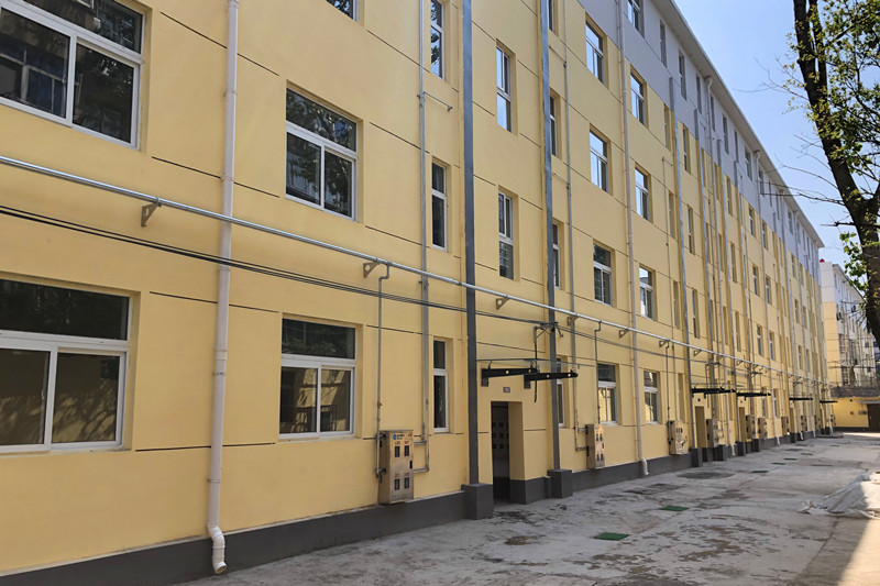 现增设阳台柱并重做阳台栏板,增加了阳台结构的整体稳定性和抗震性。对原有雨棚进行拆除,采用钢化玻璃雨棚锚固连接在进户单元门上方,消除雨棚倒塌的安全隐患。按设计要求对部分混凝土梁和柱通过采取增大截面的加固方式,增加结构的整体抗载荷能力。板底贴碳纤维布加固,并对墙体采用外加双面钢筋网加固方式,楼板支座处及墙板于墙板交接处采用L150*10的角钢增加板支撑部位的接触面积,提高了墙体和楼板的稳定性。楼面层重新翻修,外门外窗进行更换,对卫生间、厨房做防水。水电安装按新的设计安装改造。室内地面及墙面、外墙面经加固后,焕然一新,给居民创造一个温馨舒适的生活环境。
